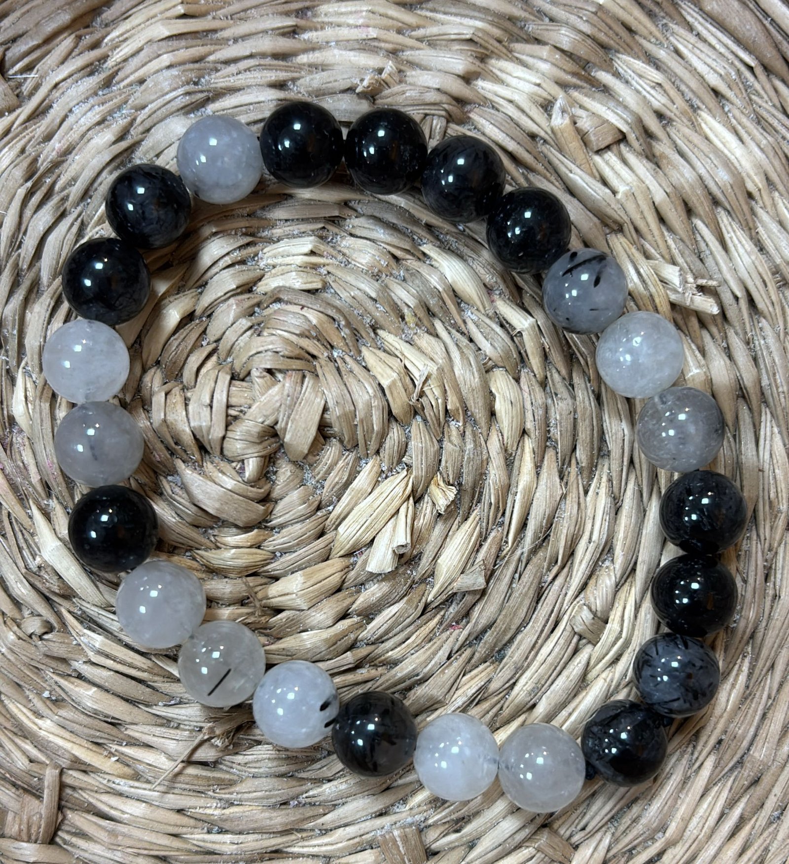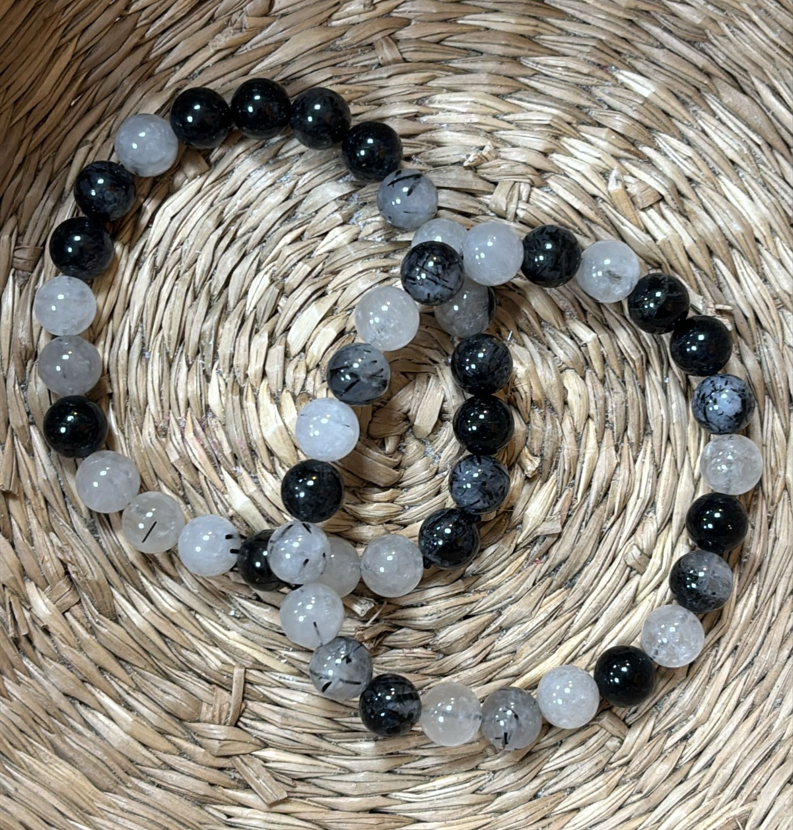 Nuestras pulseras de bola 8 mm de Cuarzo Turmalinado combinan la fuerza protectora de la turmalina negra con la claridad y la luz del cuarzo. Una mezcla única que limpia la energía y te ayuda a mantenerte centrada en cualquier situación.