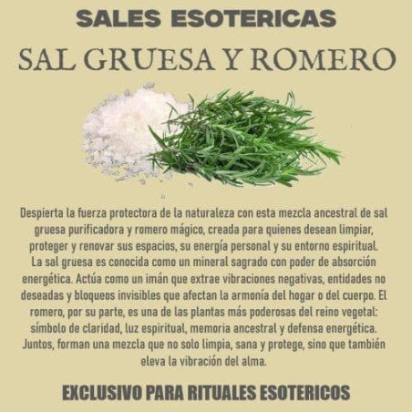Despierta la fuerza protectora de la naturaleza con esta mezcla ancestral de sal gruesa purificadora y romero mágico, creada para quienes desean limpiar, proteger y renovar sus espacios, su energía personal y su entorno espiritual.